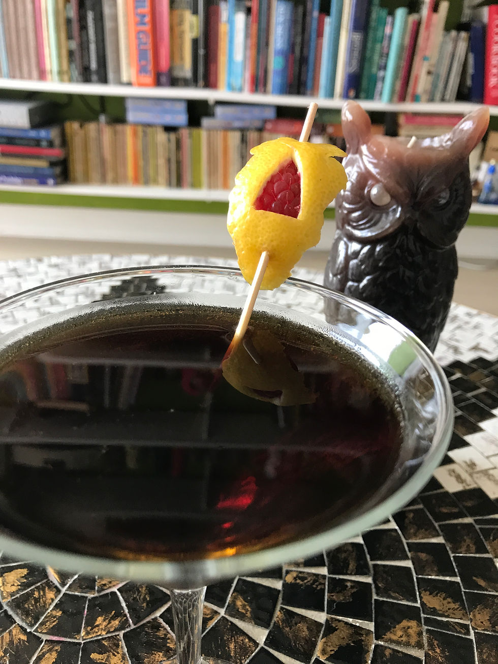 Combine all ingredients in a mixing glass with ice and stir until cold. Strain into a cocktail glass and garnish with a lemon peel and raspberry fashioned into a sign from the Black Lodge that this one's a winner.